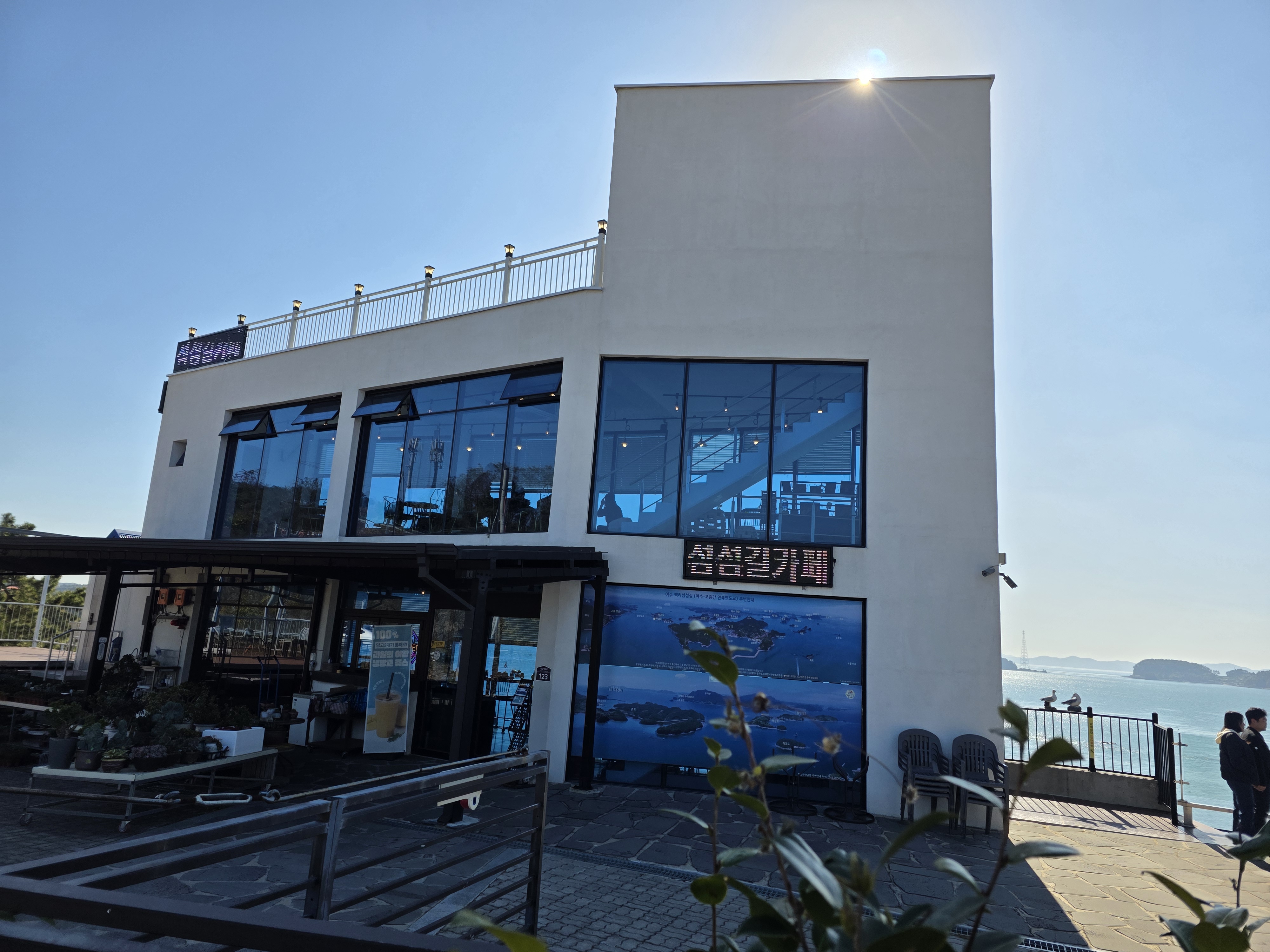 적금도 커피와 그 유명한 고흥 유자차를 멋진 바다를 바라보며 마시고 ,